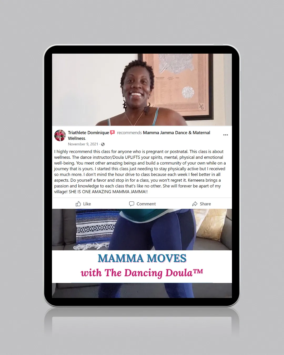 Show up live, feel supported in real time, and move with me (The Dancing Doula™) and other moms who get it. This is your built-in accountability, encouragement, and connection — no more waiting on motivation to “just appear.”
